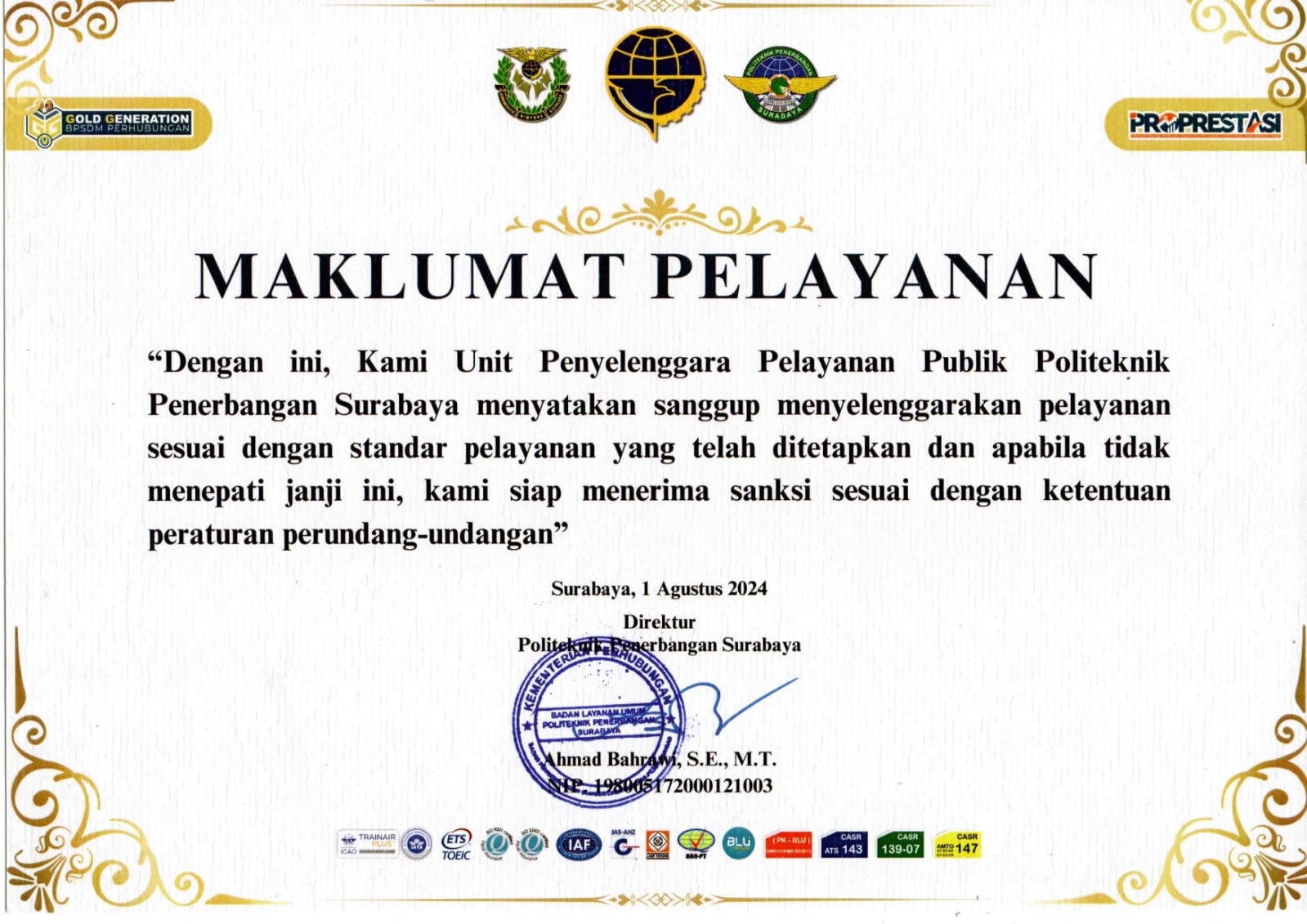 Maklumat Pelayanan Publik Politeknik Penerbangan